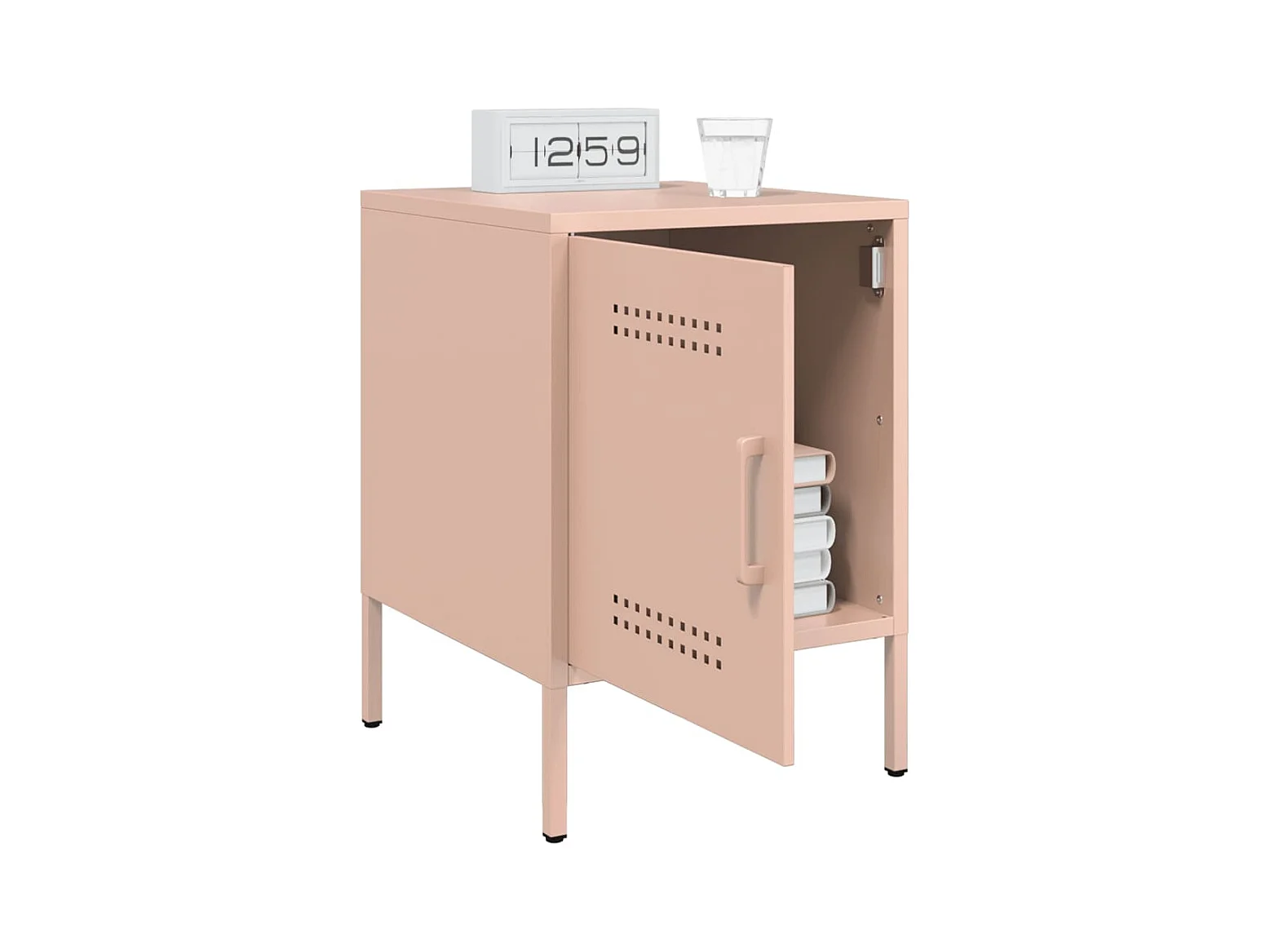 Mesita de noche | Mesilla de noche de acero laminado en frío rosa 36x39x60,5 cm