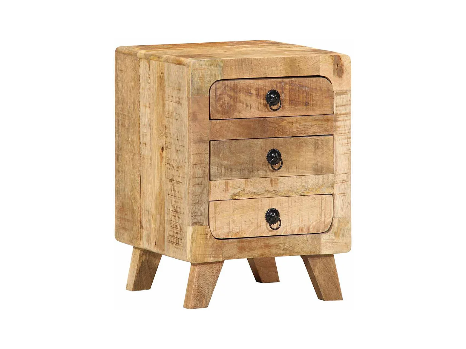 Mesita de noche | Mesilla de noche de madera maciza de mango rugosa 37x32x50 cm