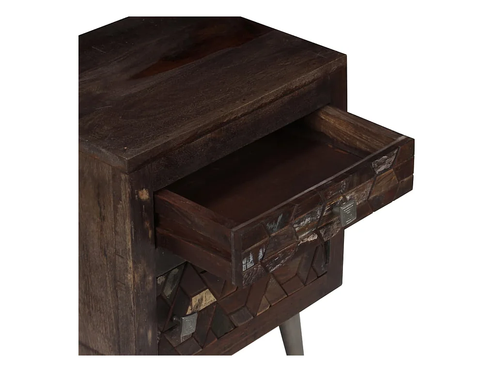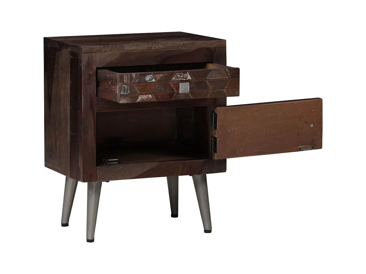 Mesita de noche | Mesilla de noche de madera maciza reciclada y acero 40x30x50 cm