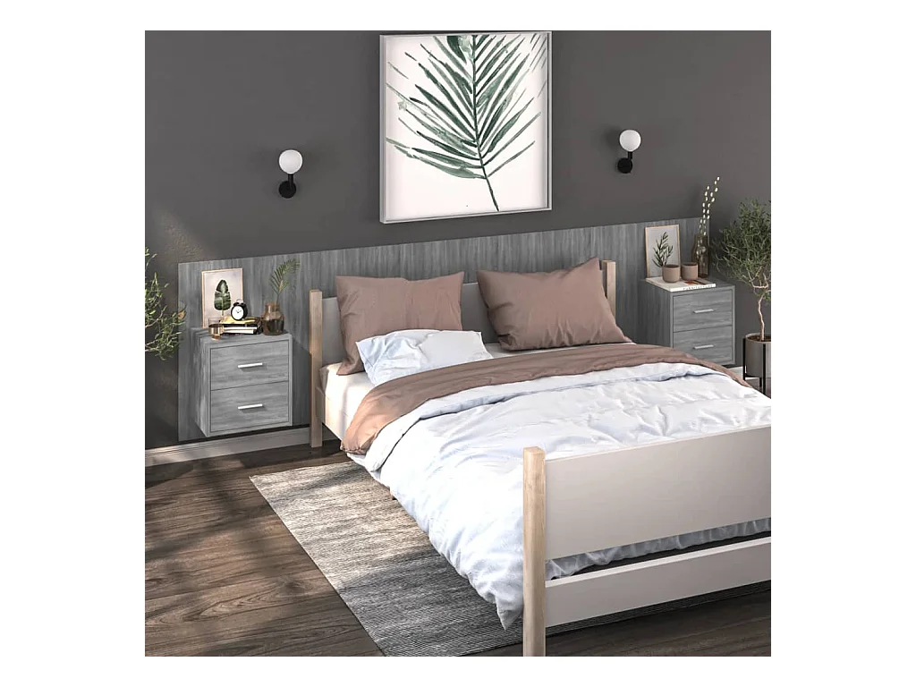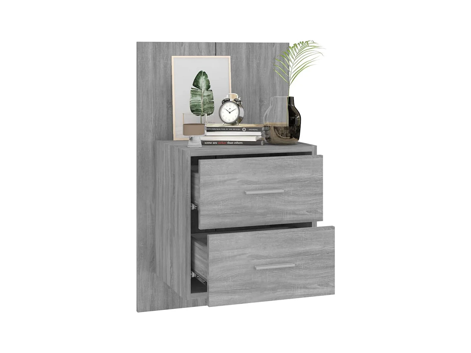 Mesitas de noche | Mesilla de noche de pared 2 uds gris sonoma 45x26x28,5 cm