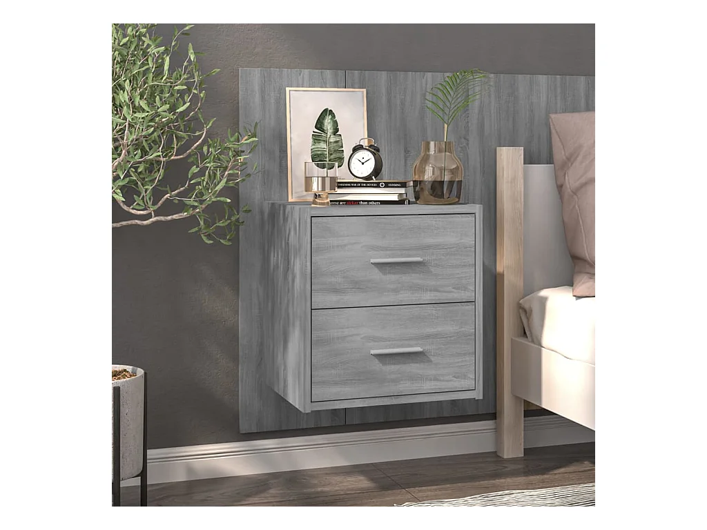 Mesitas de noche | Mesilla de noche de pared 2 uds color gris Sonoma 35x35x20 cm