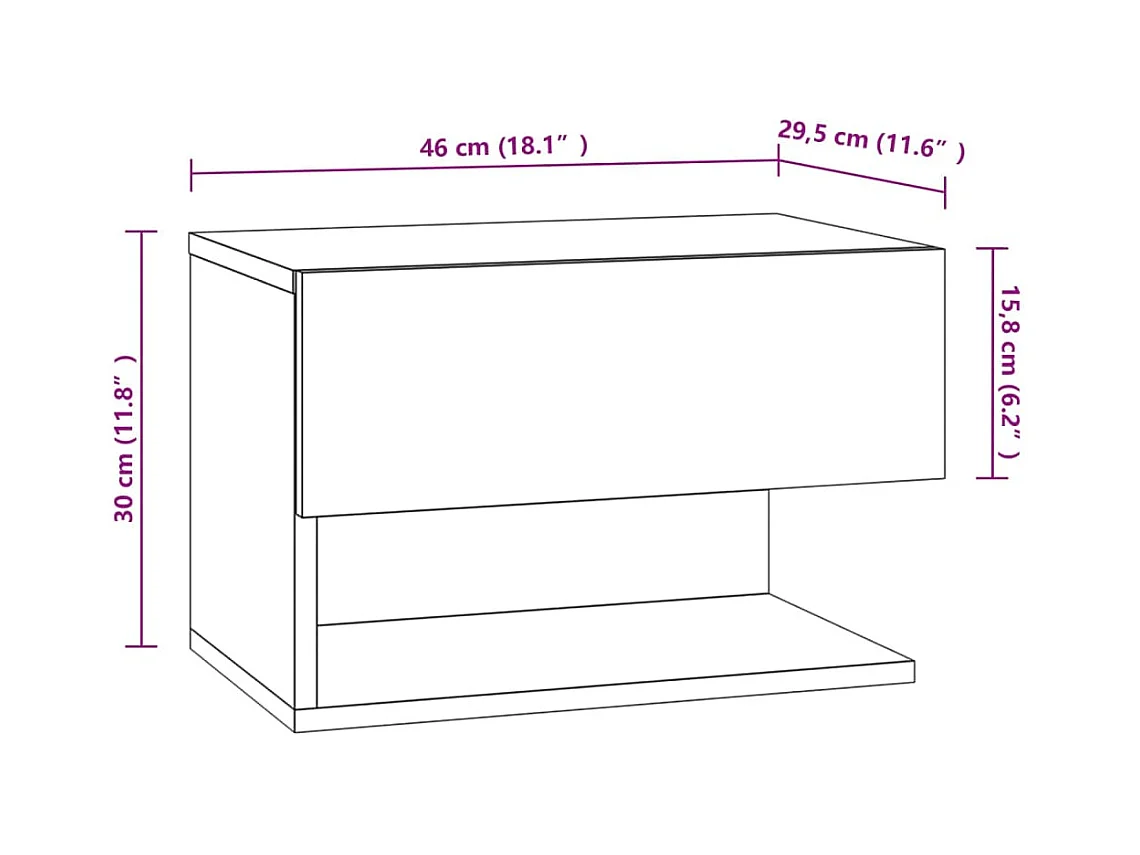 Mesita de noche | Mesilla de noche de pared gris Sonoma 40x30x61 cm