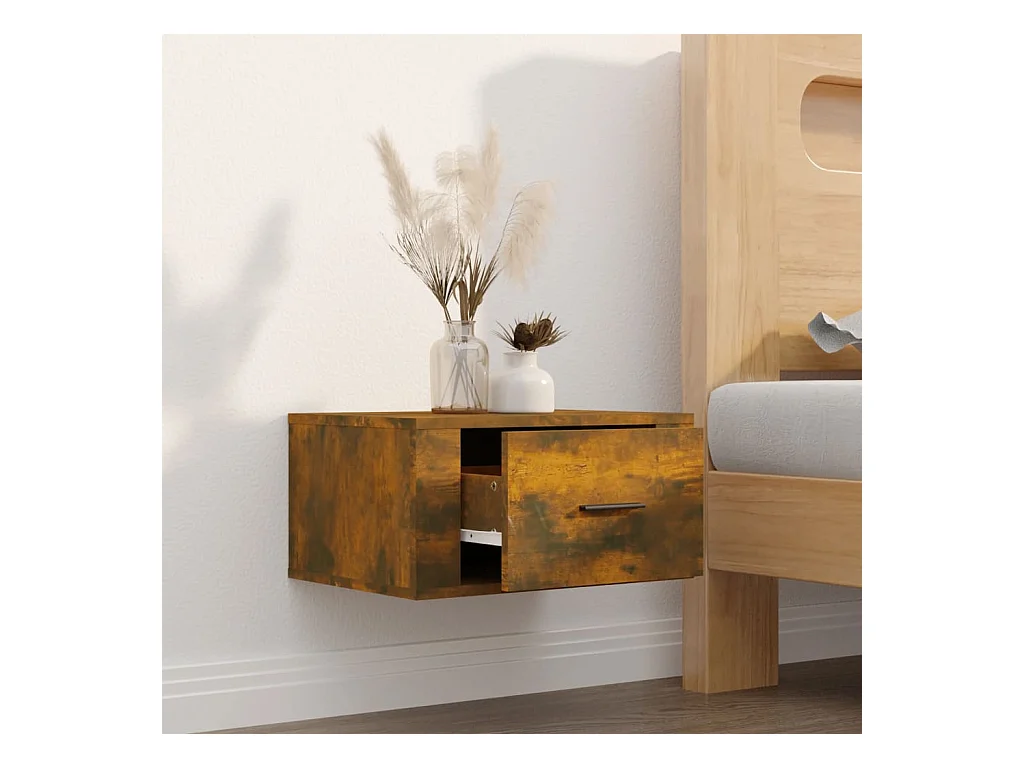 Mesita de noche | Mesilla de noche de pared color roble ahumado 50x30x47 cm