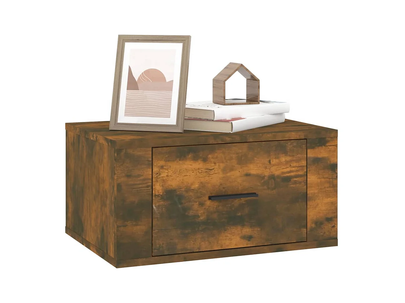 Mesita de noche | Mesilla de noche de pared color roble ahumado 45x30x35 cm