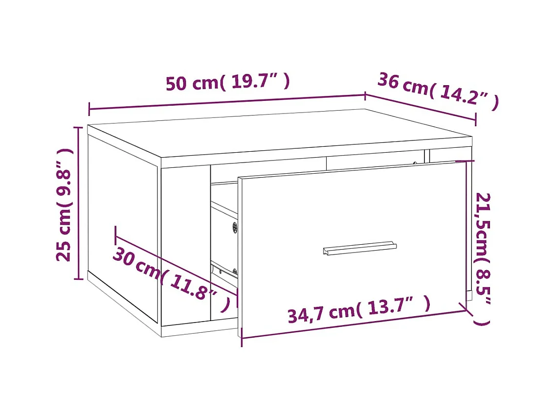 Mesita de noche | Mesilla de noche de pared color roble ahumado 50x36x25 cm
