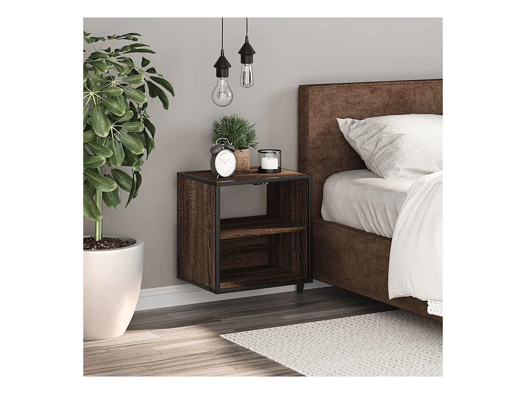Mesita de noche | Mesilla de noche de pared color roble marrón 40x31x39,5 cm