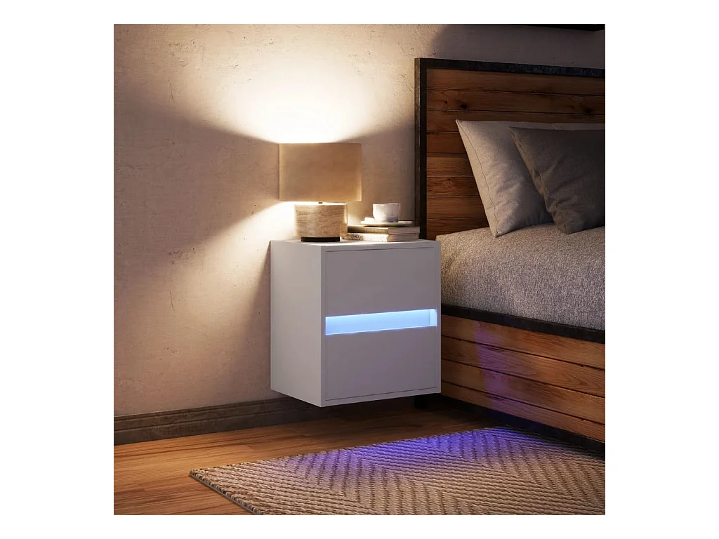 Mesita de noche | Mesilla de noche con luces LED madera de ingeniería blanca