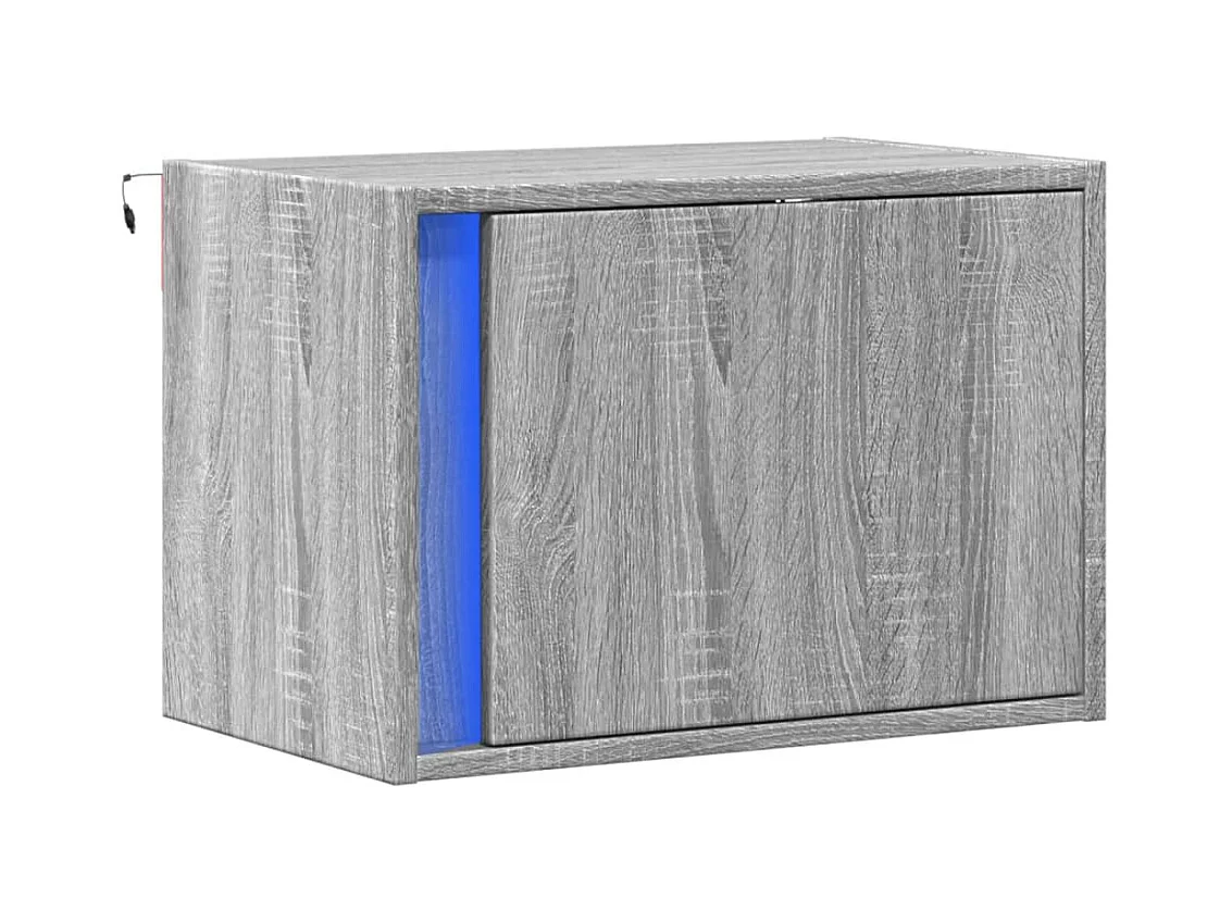 Mesita de noche | Mesilla de noche de pared con luces LED gris Sonoma