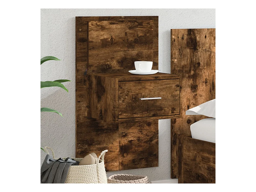 Mesita de noche | Mesilla de noche de pared con luces LED roble ahumado