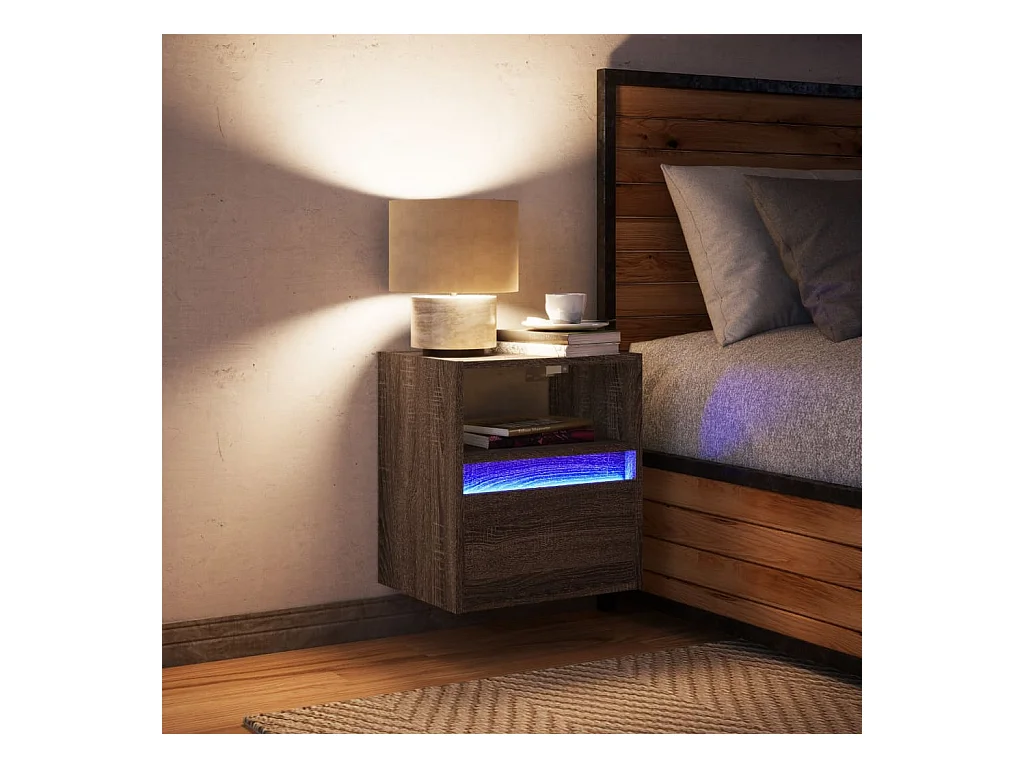 Mesita de noche | Mesilla de noche de pared con luces LED roble marrón