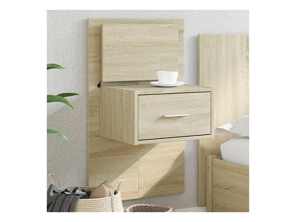 Mesita de noche | Mesilla de noche de pared con luces LED roble Sonoma