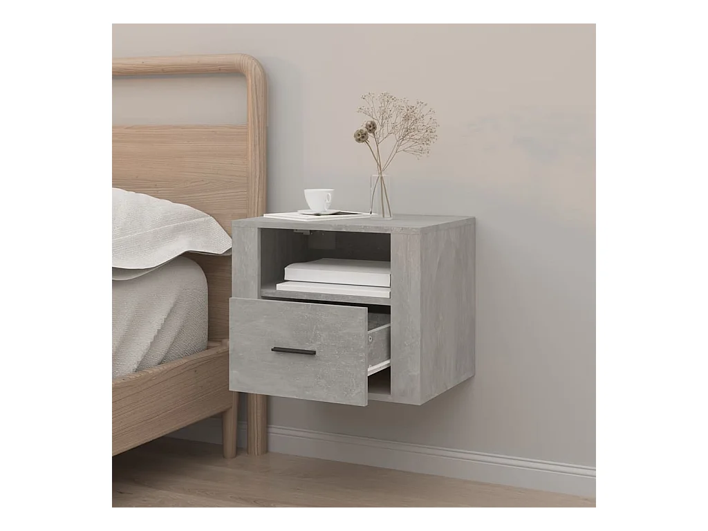 Mesita de noche | Mesilla de noche de pared gris hormigón 50x36x40 cm