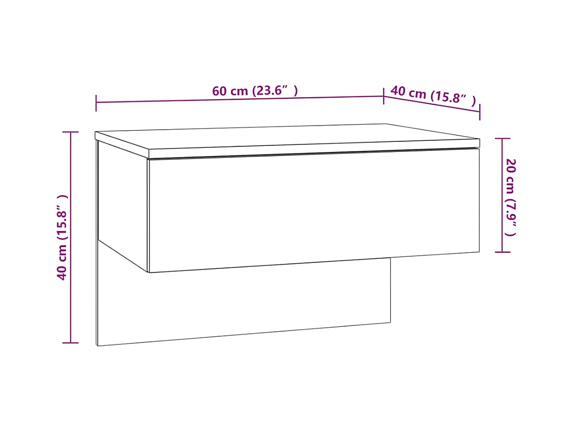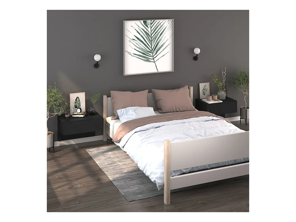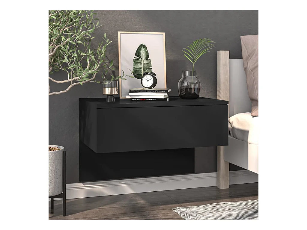 Mesita de noche | Mesilla de noche de pared negra 45x30x35 cm