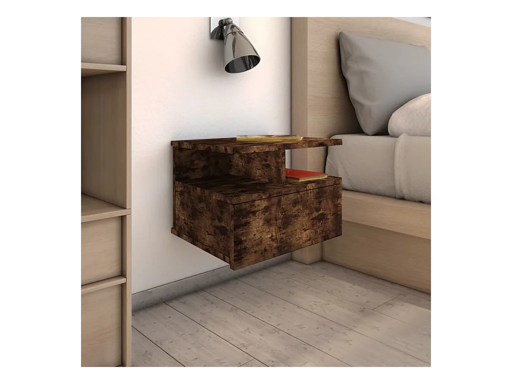 Mesita de noche | Mesilla de noche flotante 2 uds madera roble ahumado 40x30x15cm
