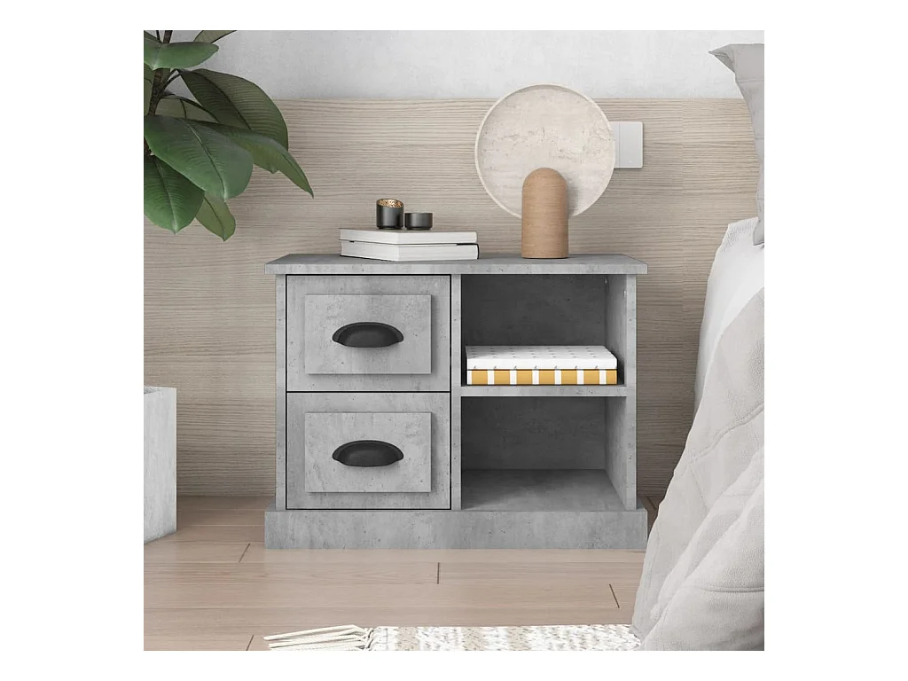 Mesita de noche | Mesilla de noche madera contrachapada gris hormigón 60x36x45 cm