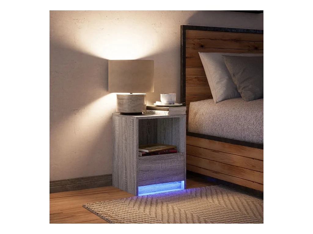 Pack 2 uds Mesitas de noche | Mesilla de noche con luces LED roble marrón 35x39x55 cm