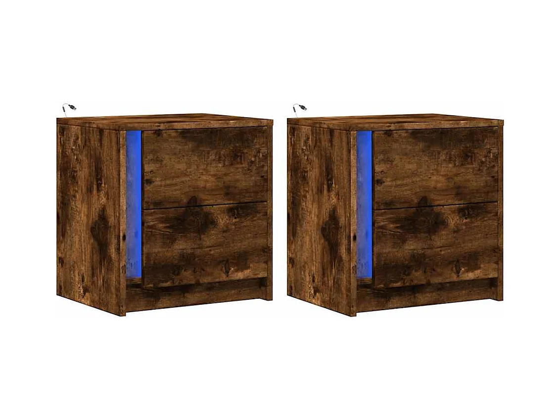 Mesitas de noche | Mesilla de noche con luces LED 2 uds roble ahumado 50x40x45 cm