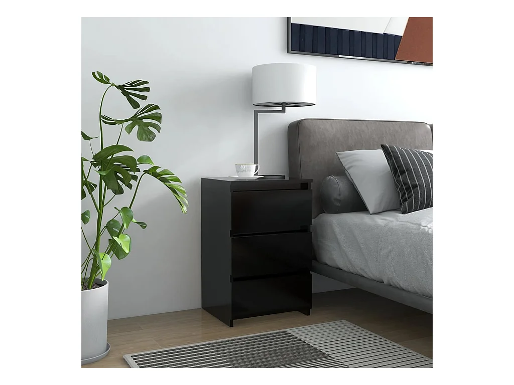 Mesita de noche | Mesilla de noche madera contrachapada negro 40x35x60 cm