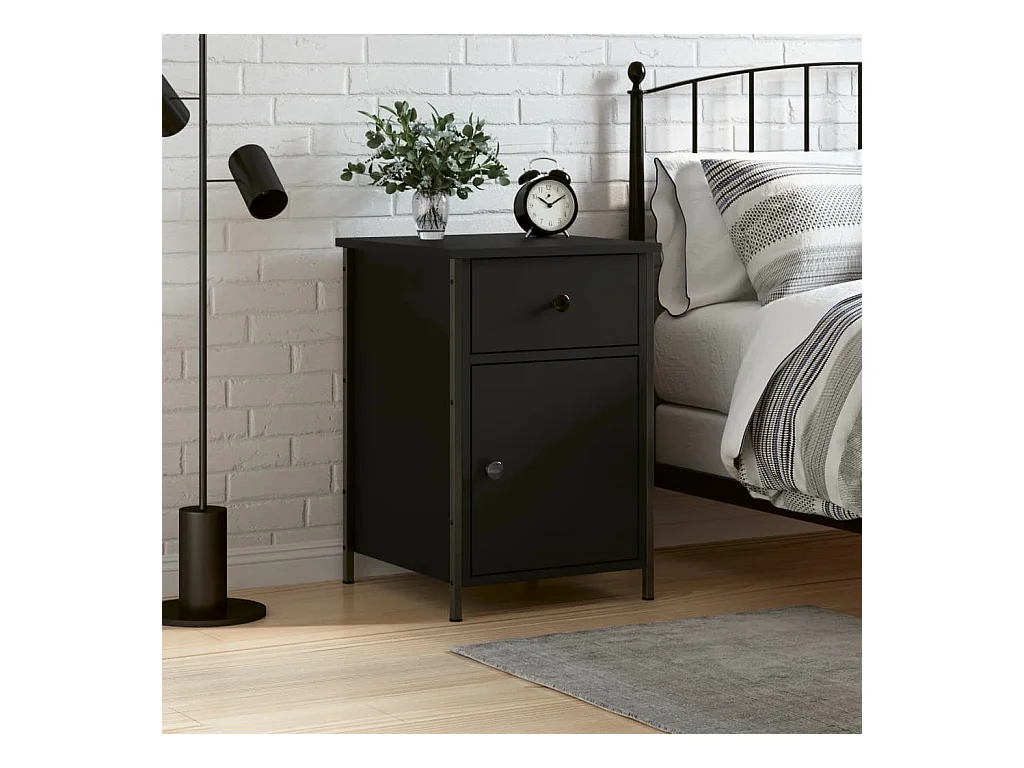 Mesita de noche | Mesilla de noche madera de ingeniería negro 40x36x60 cm