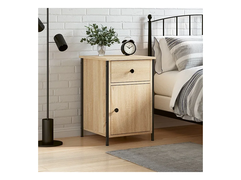 Mesita de noche | Mesilla de noche madera ingeniería roble sonoma 40x34,5x60cm metal
