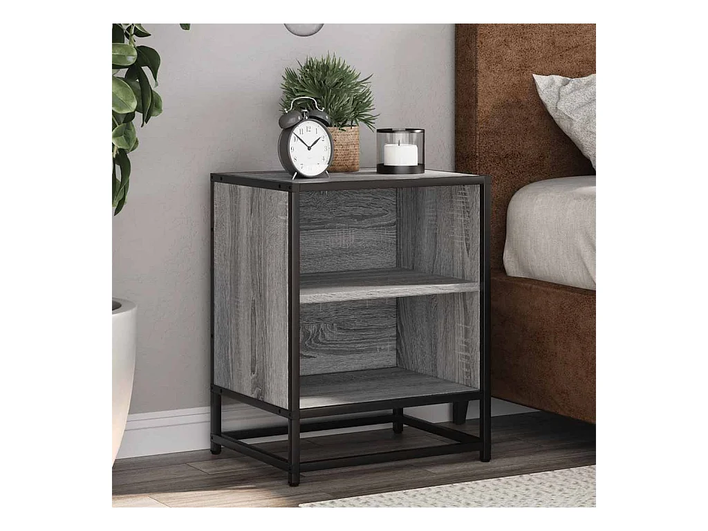 Mesita de noche | Mesilla de noche madera de ingeniería gris sonoma 40x31x50 cm metal
