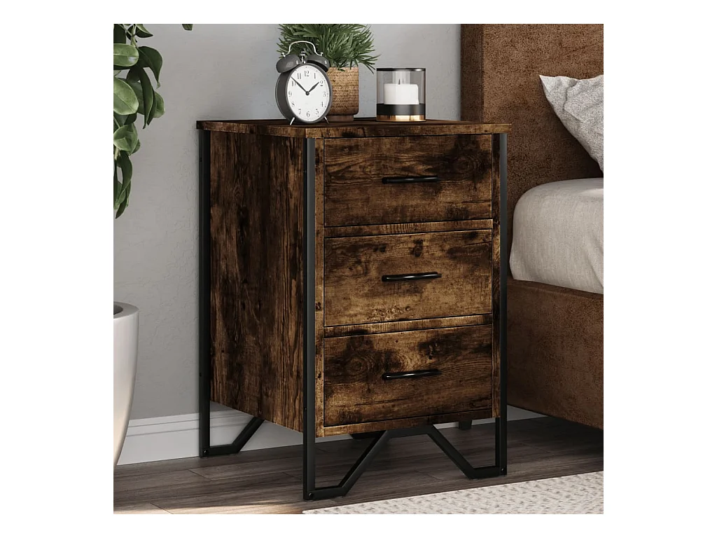 Mesita de noche | Mesilla de noche madera contrachapada roble ahumado 40x42x60 cm