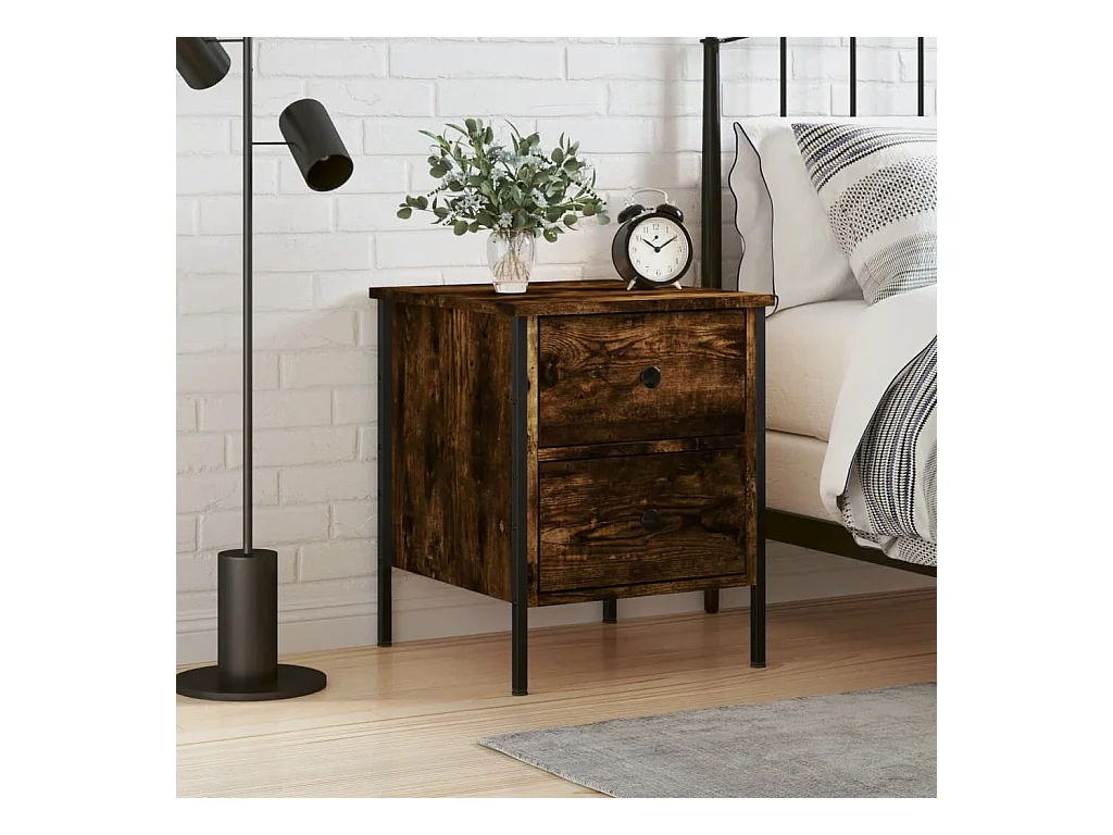 Mesita de noche | Mesilla de noche madera ingeniería roble ahumado 40x31x50cm metal