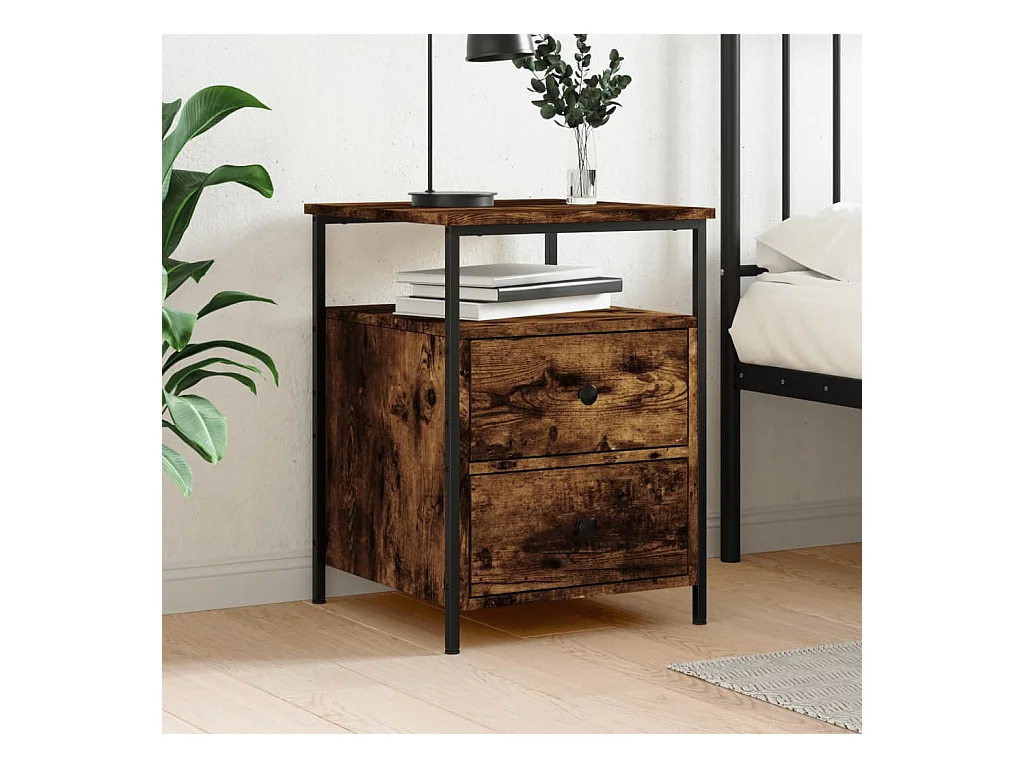 Mesita de noche | Mesilla de noche madera contrachapada roble ahumado 50x36x60 cm