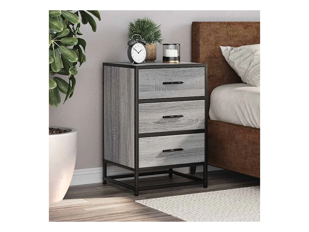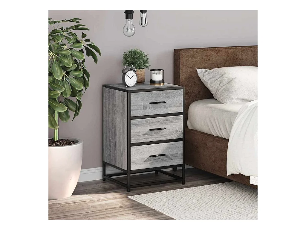 Mesita de noche | Mesilla de noche madera ingeniería gris sonoma 40x34,5x60 cm metal