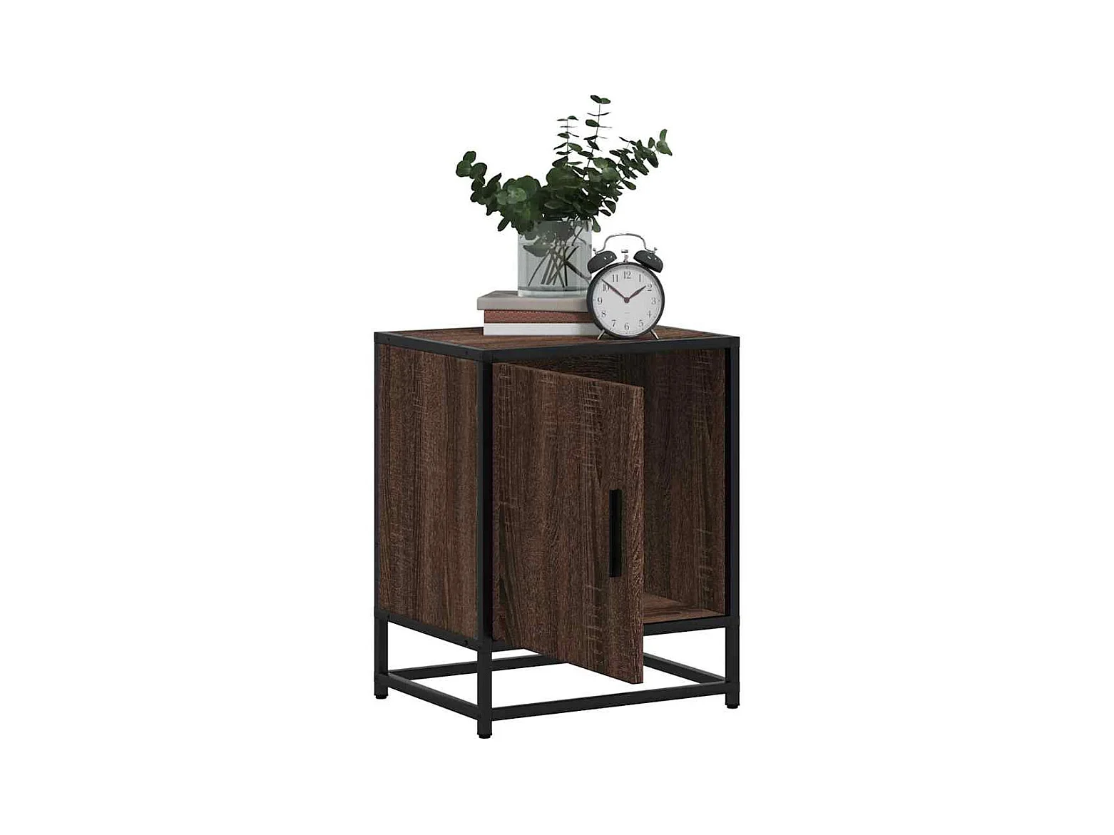 Mesita de noche | Mesilla de noche madera ingeniería roble marrón 40x31x50cm metal