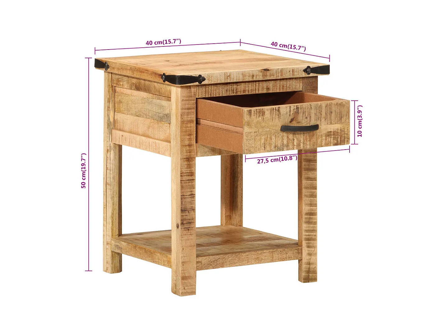 Mesita de noche | Mesilla de noche madera maciza de mango 40x40x50 cm