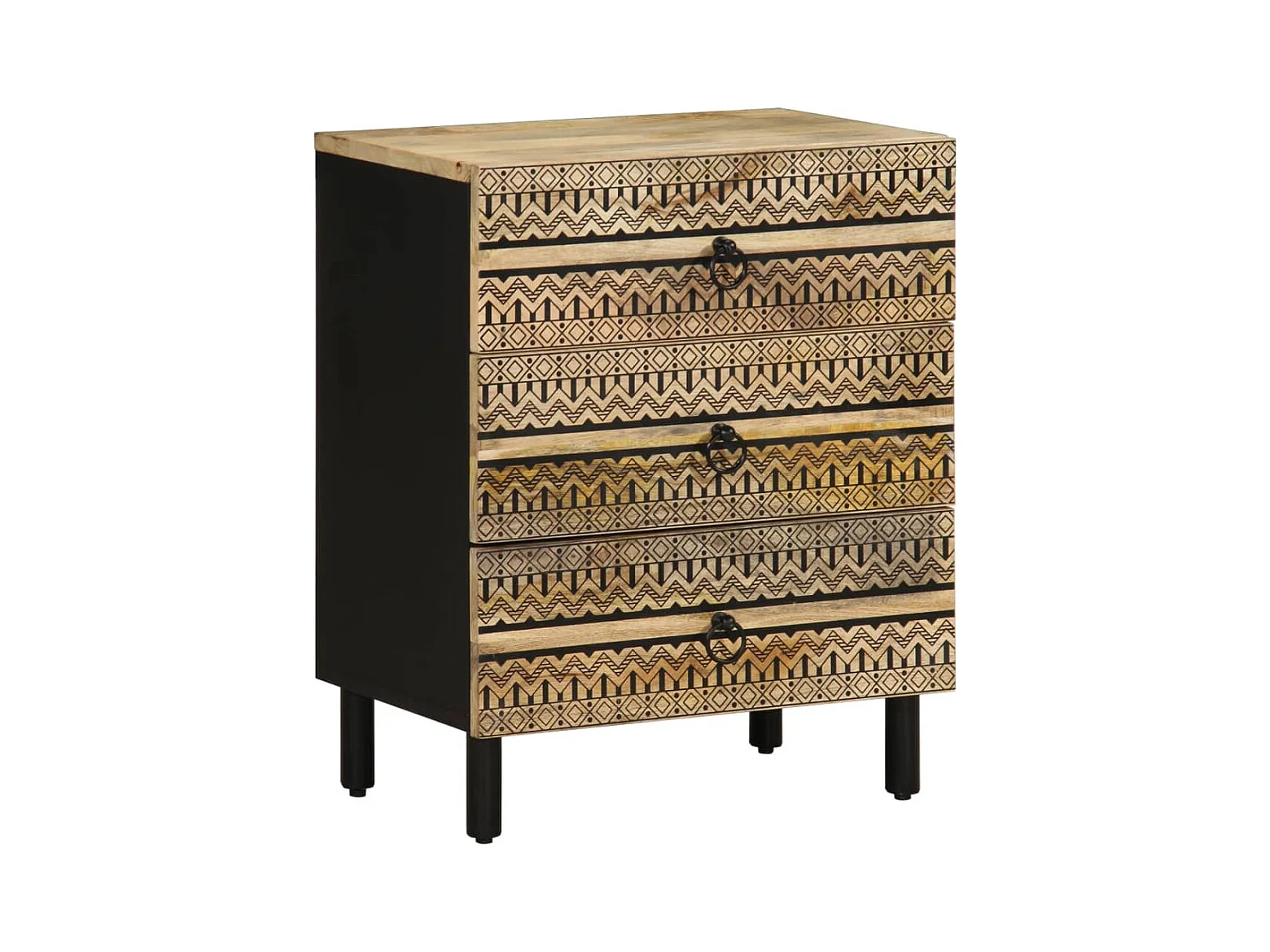 Mesita de noche | Mesilla de noche de madera maciza de mango negra 40x33x46 cm