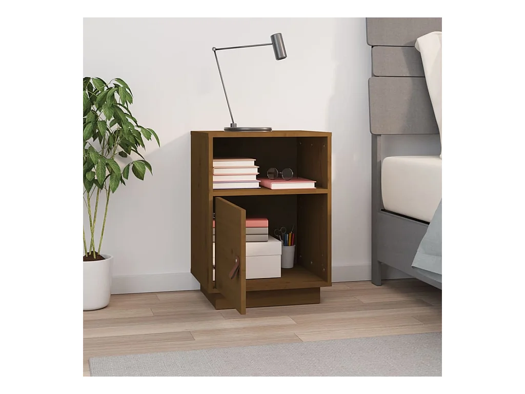 Mesita de noche | Mesilla de noche madera maciza de pino marrón miel 40x34x35 cm