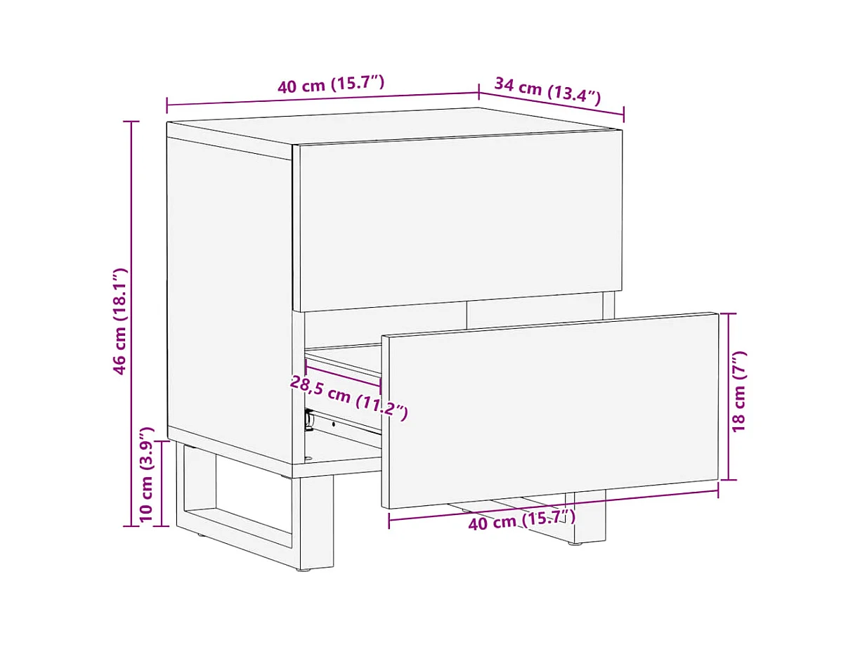 Mesita de noche | Mesilla de noche de madera maciza de mango 40x33x46 cm