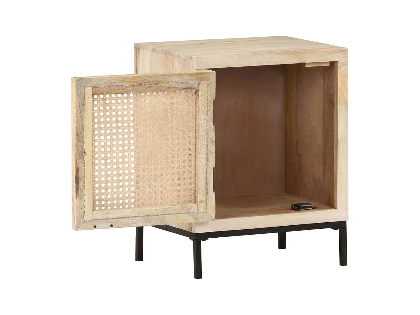 Mesita de noche | Mesilla de noche madera de mango rugosa caña natural 40x30x50cm