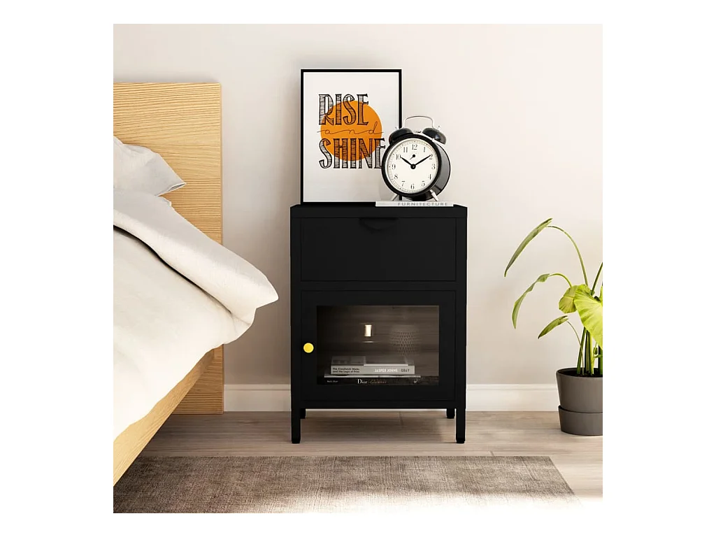 Mesita de noche | Mesilla de noche acero negra 36x39x59 cm