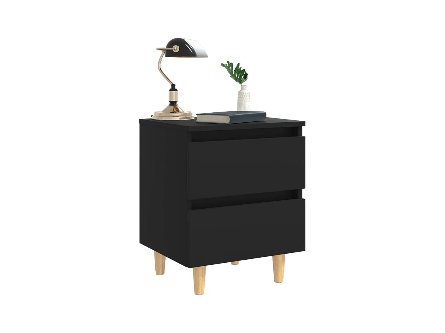 Mesita de noche | Mesilla de noche patas de madera pino maciza negro 40x35x50 cm