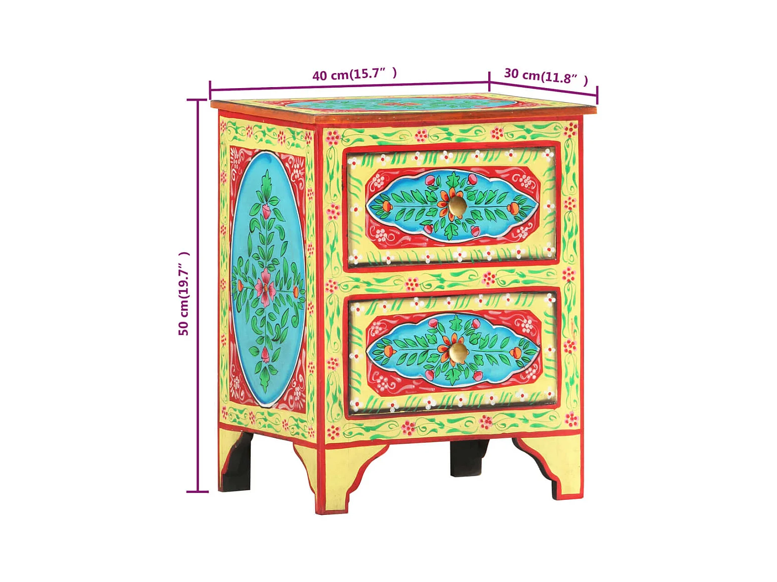 Mesita de noche | Mesilla de noche pintada a mano madera maciza mango 40x30x50 cm