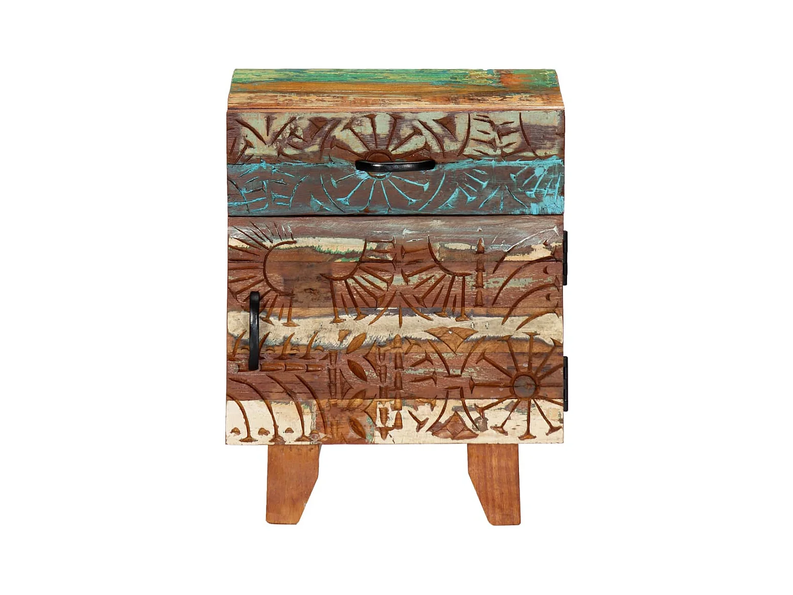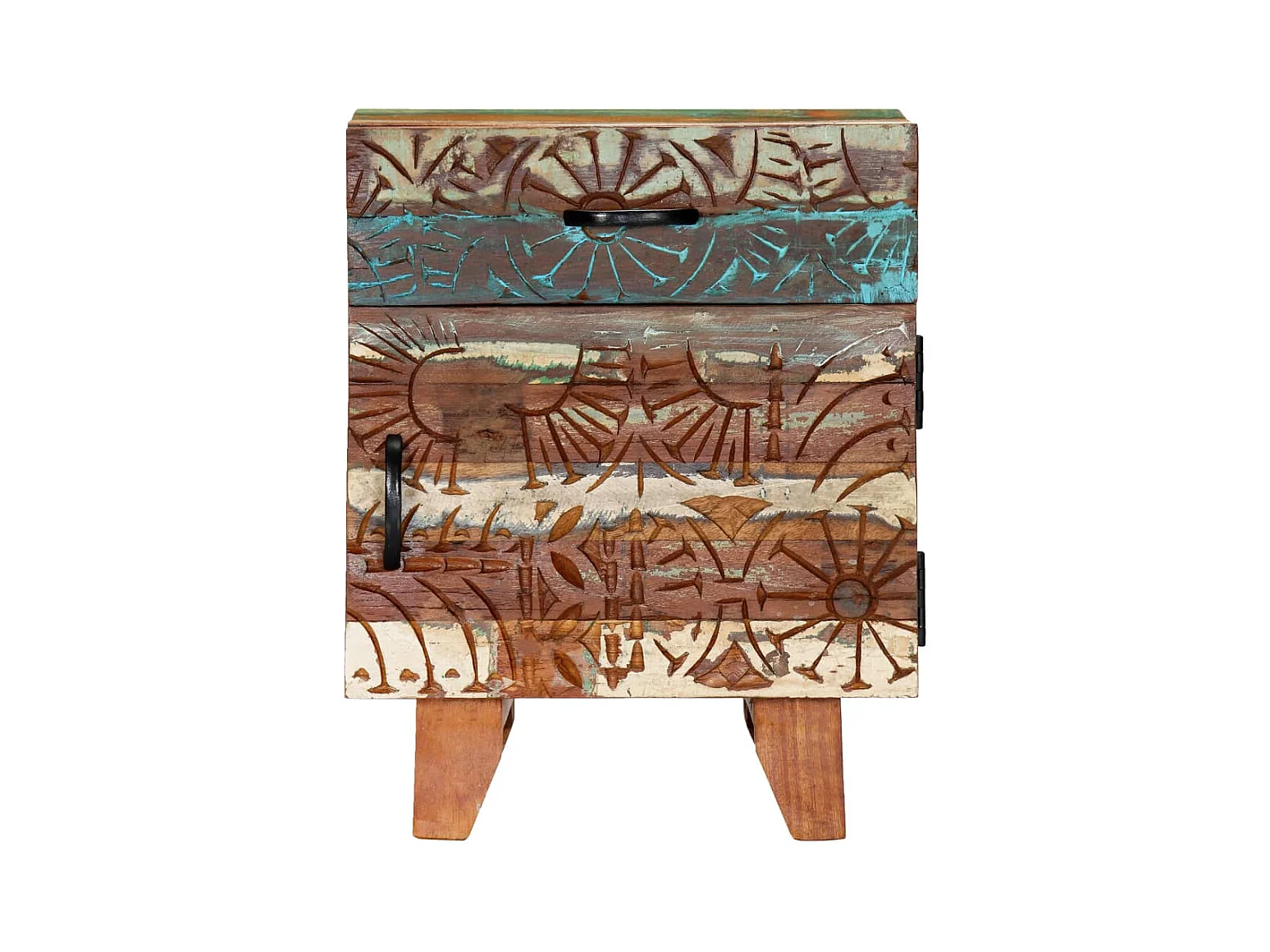 Mesita de noche | Mesilla de noche tallada a mano madera reciclada 40x30x50 cm