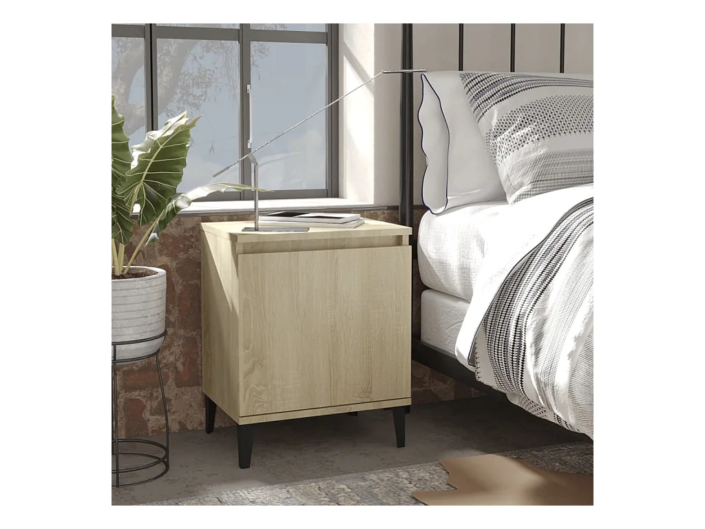 Mesita de noche | Mesilla de noche y patas de metal roble Sonoma 40x30x50 cm