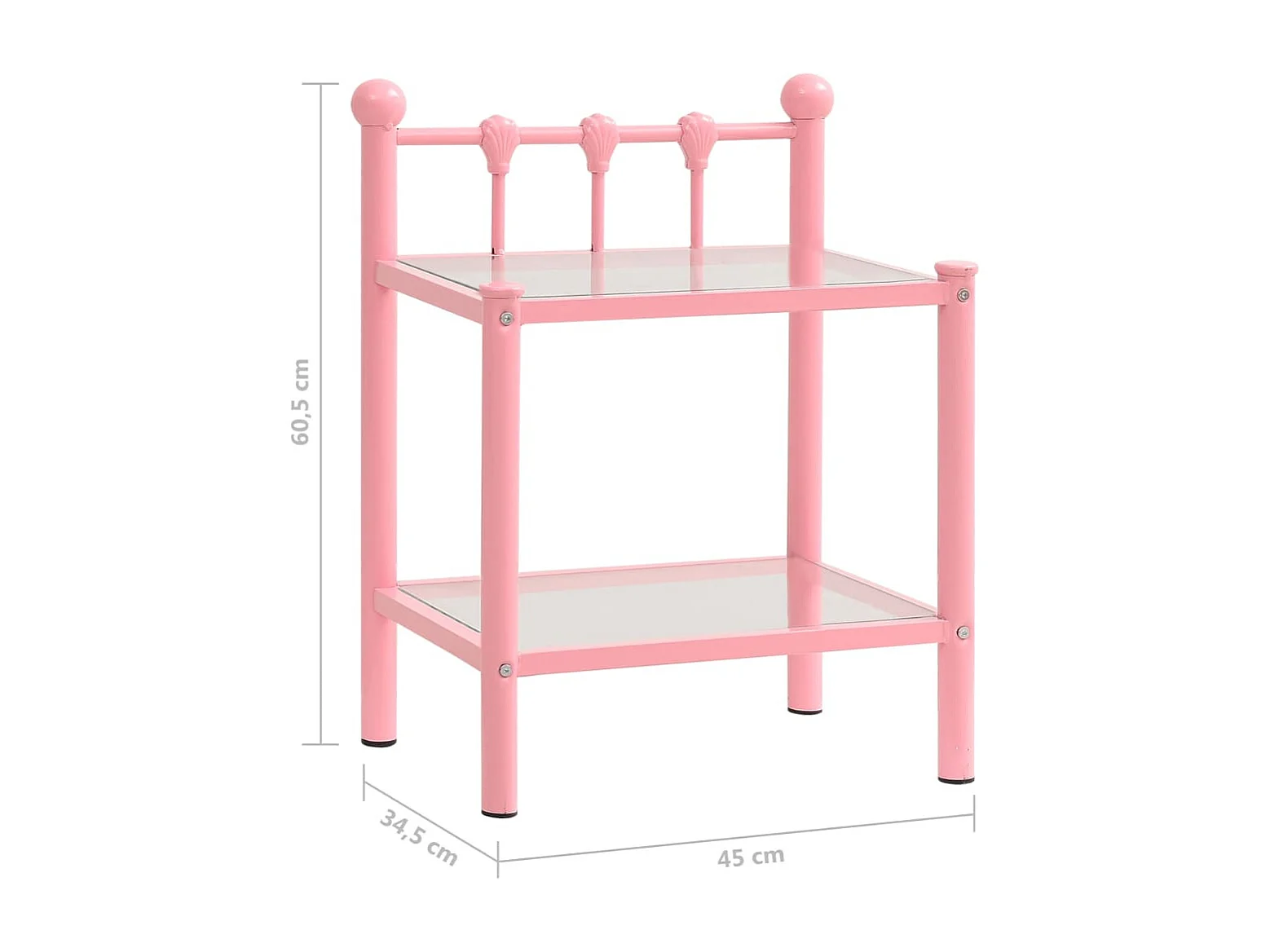 Mesita de noche metal vidrio rosa y transparente 45x34,5x60,5cm