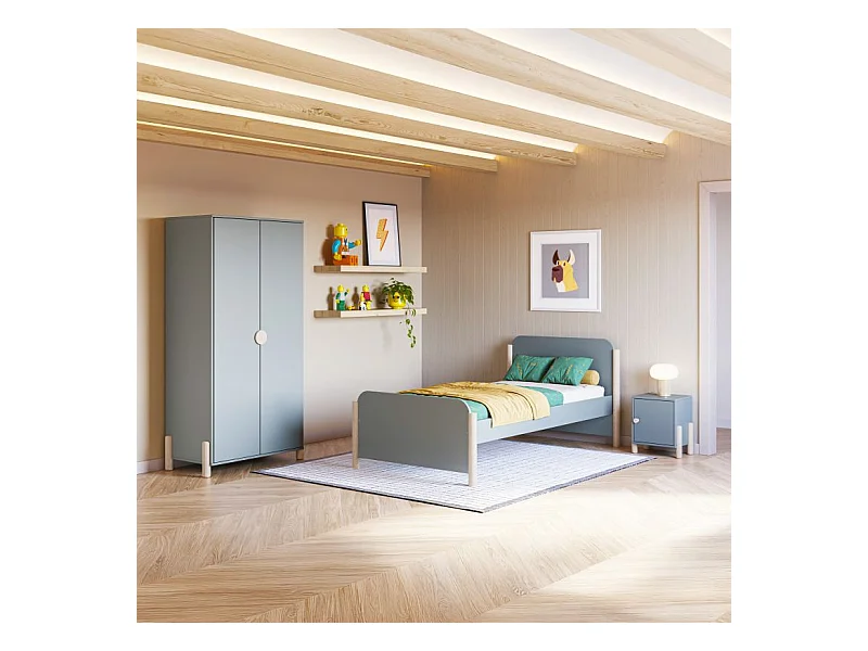 Mesita de noche juvenil Misty Breeze Verde Salvia - Oak Soft