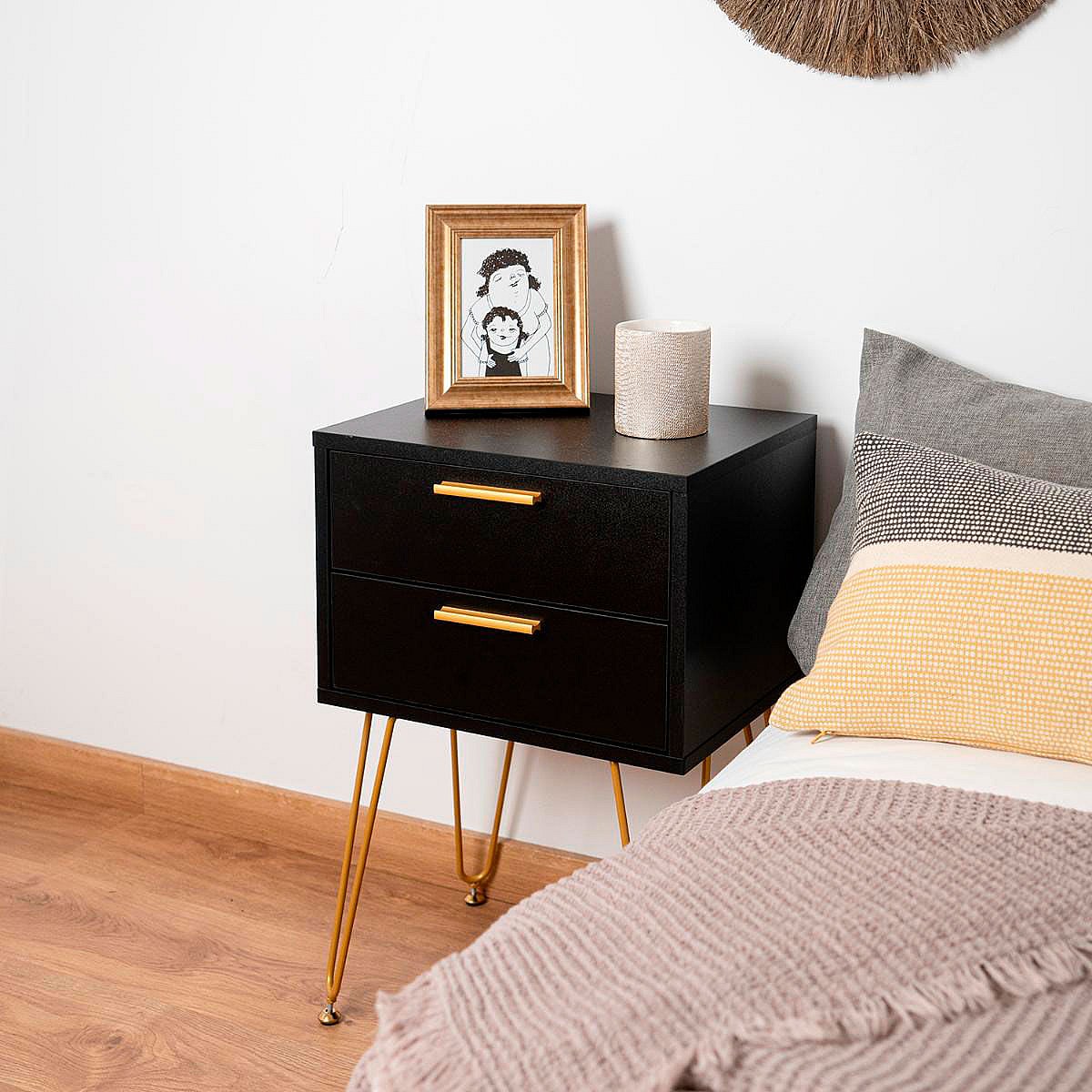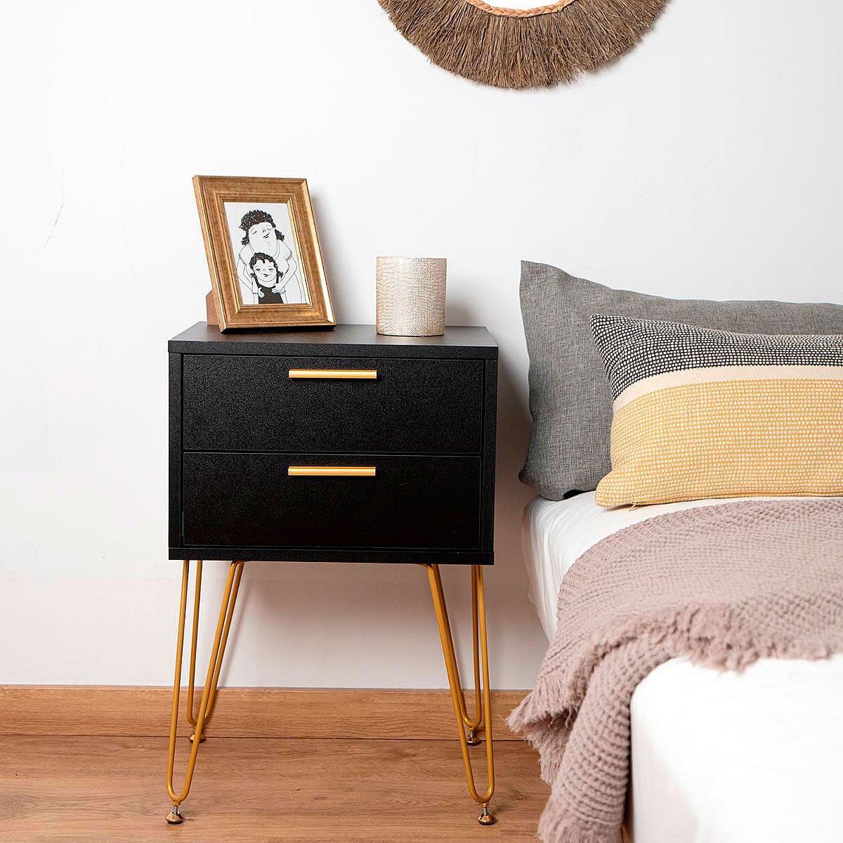 Mesita de noche MOA Vinthera 2 cajones negro/dorado 60,3x40x30 cm