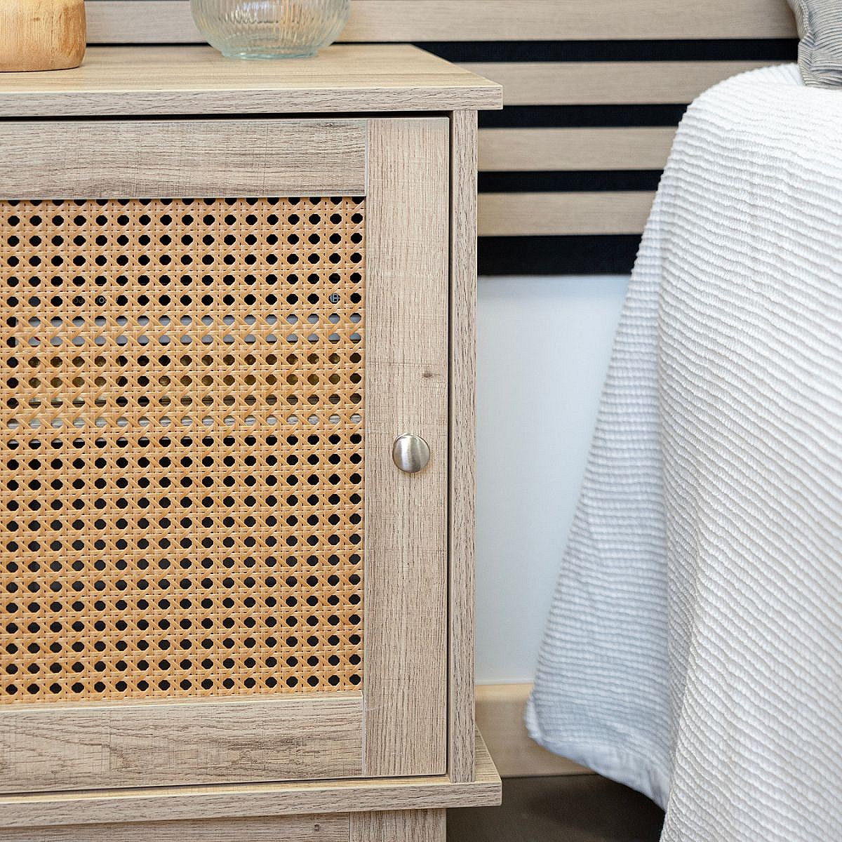 Mesita de noche MOA Vinthera con armario ratán natural 60x48x40 cm