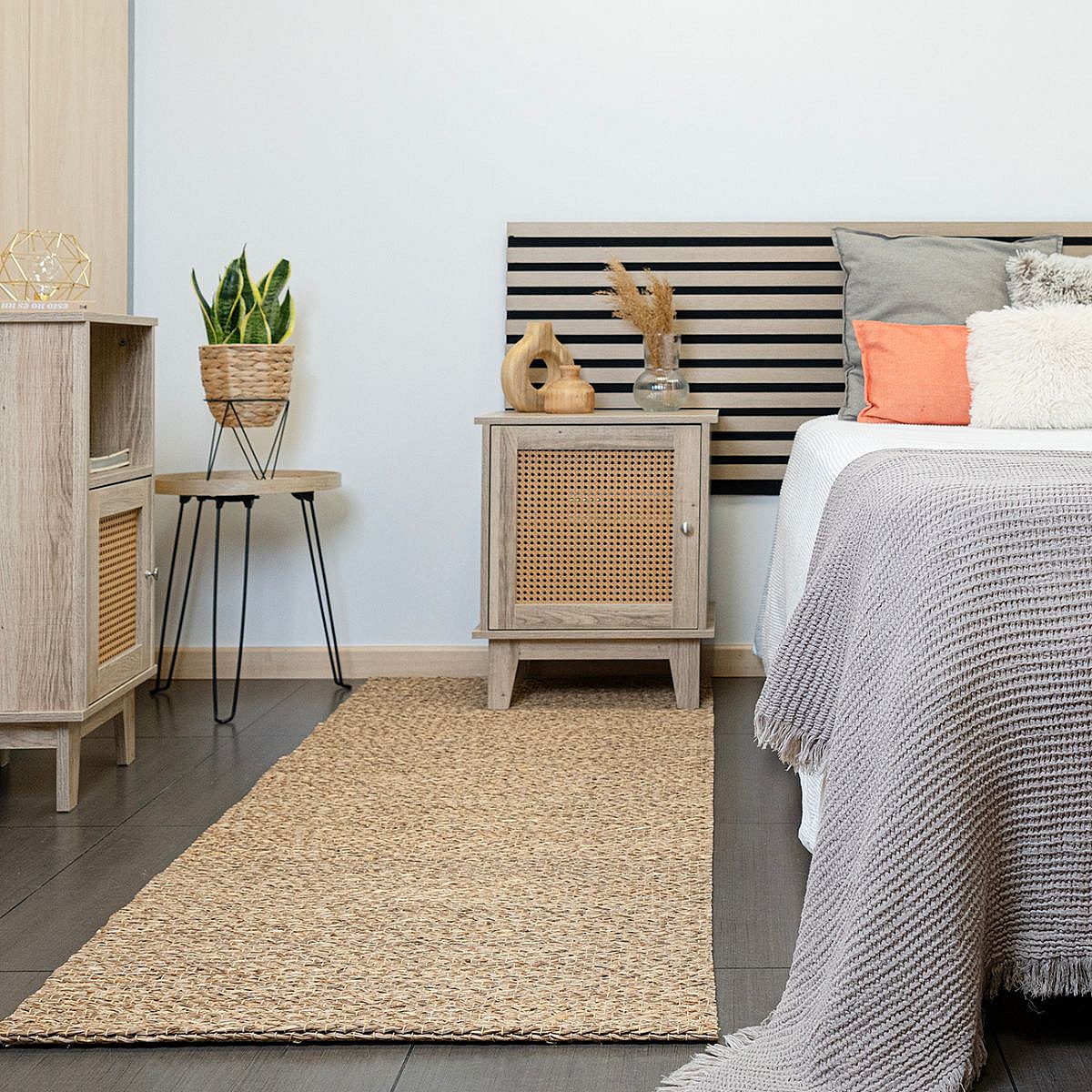 Mesita de noche con 1 cajón - de aglomerado y ratán PE - Natural