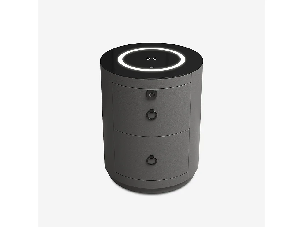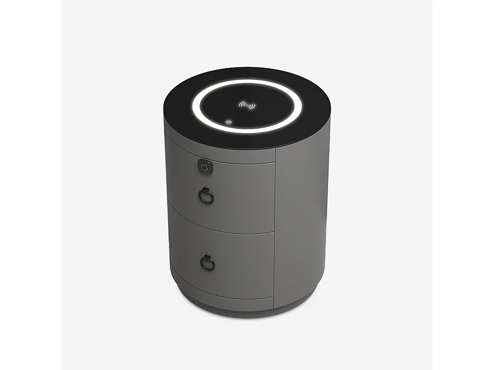 Mesita de noche moderna redonda con carga inalámbrica, luz led y 2 cajones Mohot