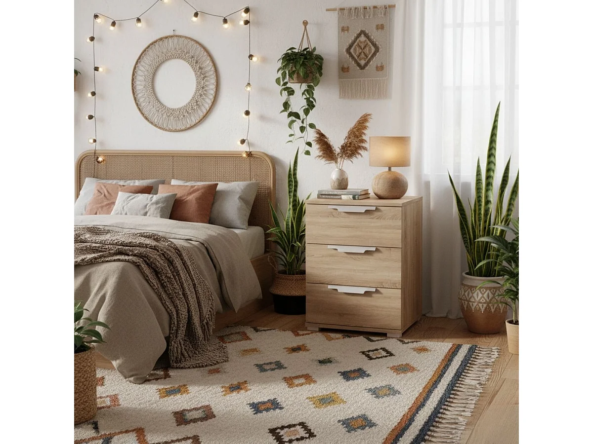 Mesita de noche Naka 3 cajones natural 61x46x42 cm