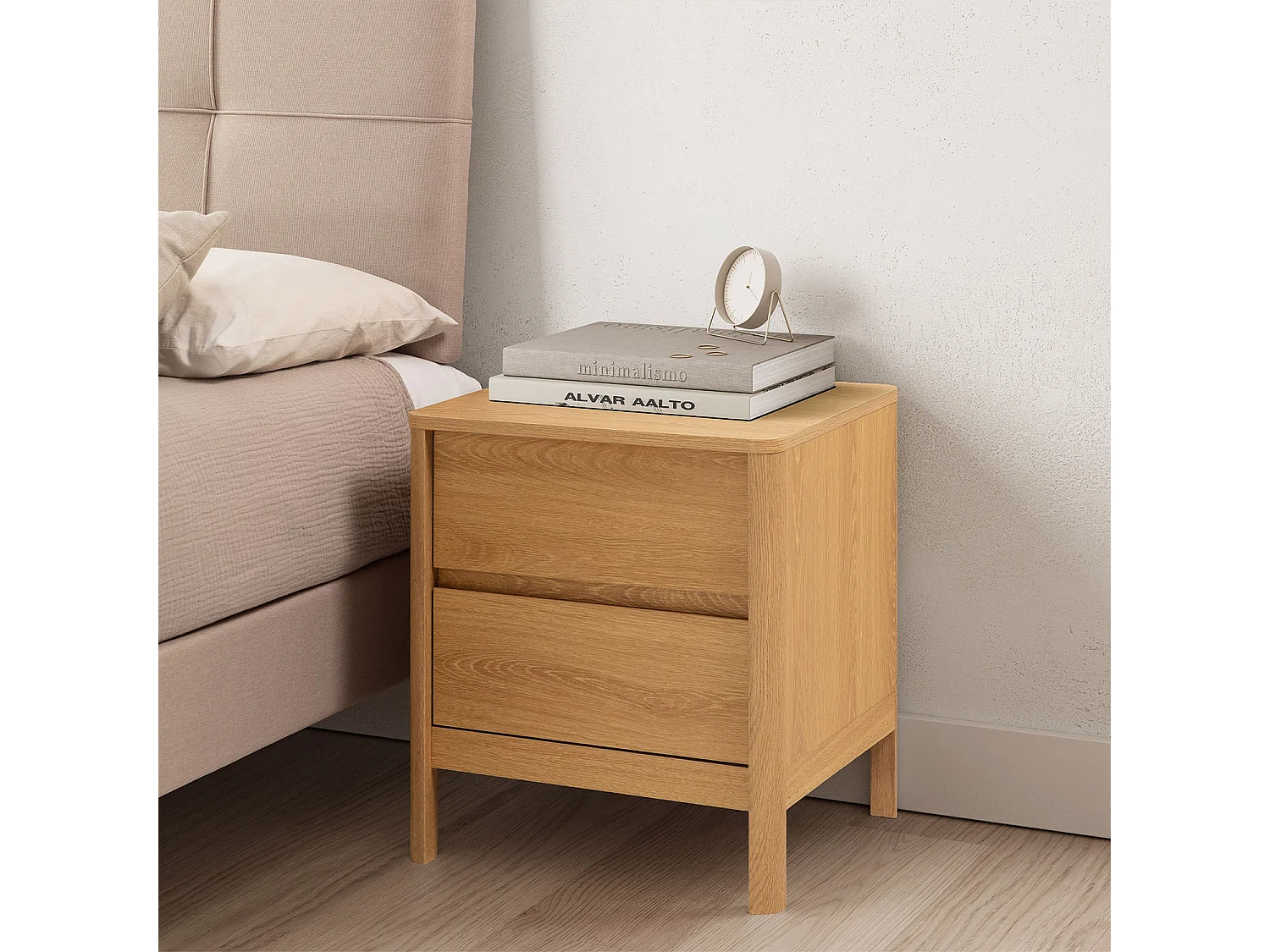 Mesita de noche con 2 puertas correderas y 1 nicho, set de 2 natural