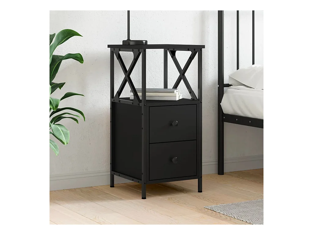 Mesita de noche negra 34x35,5x70 cm de madera contrachapada