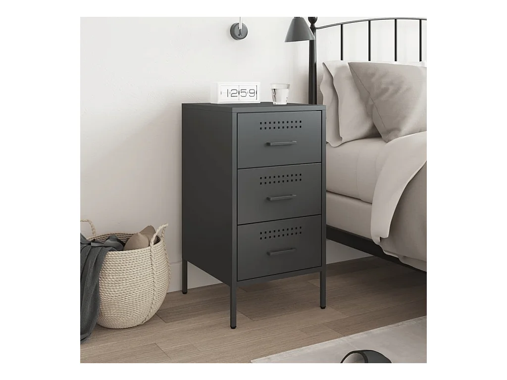 Mesita de noche con 2 cajones negra 36x36x68 cm
